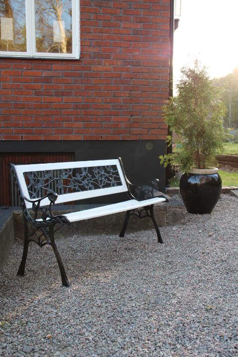 Frågan är nu om det blev så snyggt?? Svart och vitt är kombo jag gillar, men kanske skulle jag behållit det träfärgade på en bänk som denna som ändå är i gammal stil. Vad tycker du?